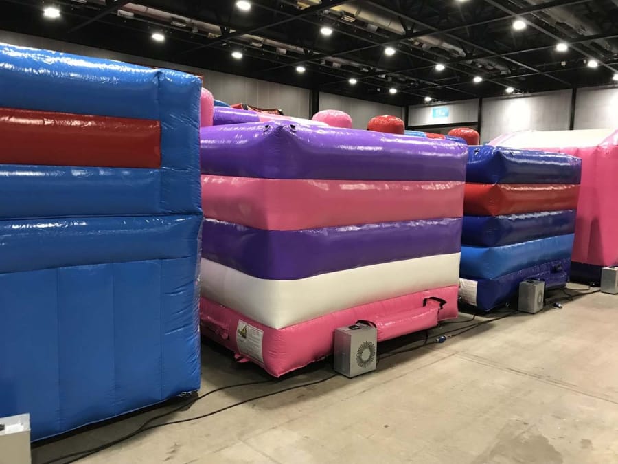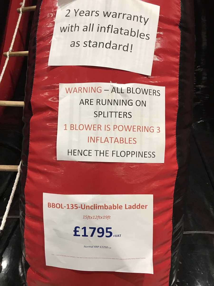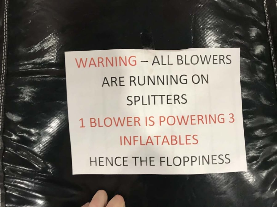 Sadly, Lee (Better-Bounce owner) had an issue with floppiness and struggled to maintain a firm erection of his equipment. He had to put signs up explaining this, but it wasn’t due to poor design, but rather running kinked blower tubes and only one blower despite it requiring two in some cases.