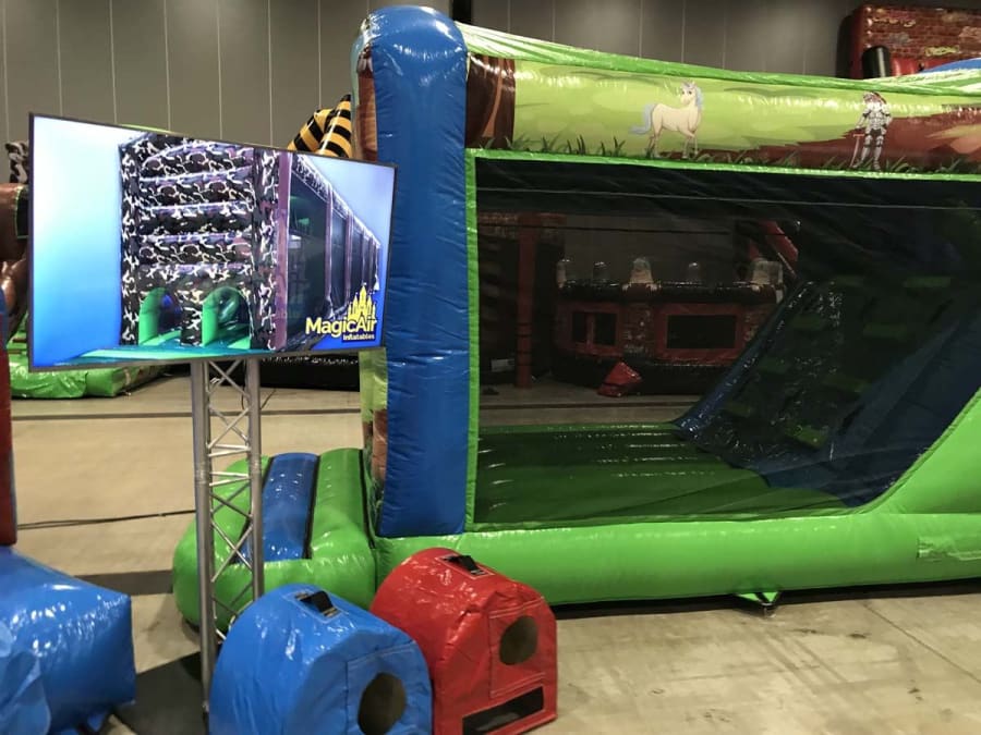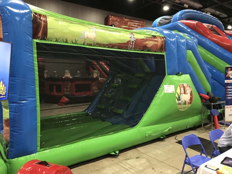 Every single unit has the extras. In some cases this could become annoying. There was some castles that some may say have too many anchor points. You can argue that there’s never enough, although it’s important to remember that if they’re present, you have to use them when outside. Personally, I think some had a little too many (one small h-frame castle had an extra 6, twice as many as a comparable unit from most other manufacturers would have), but I am comforted by the fact that MagicAir is committed to quality and safety and in the context of a trade-show, this is exactly what I want to see on an exhibit piece!