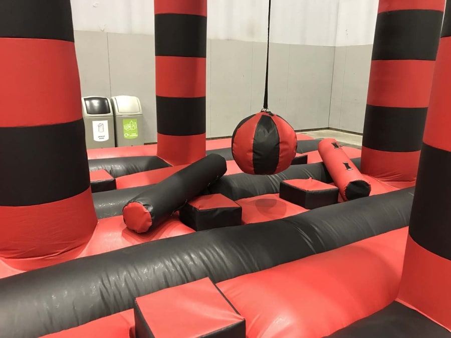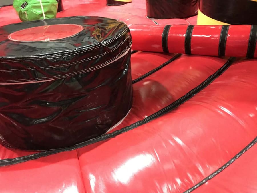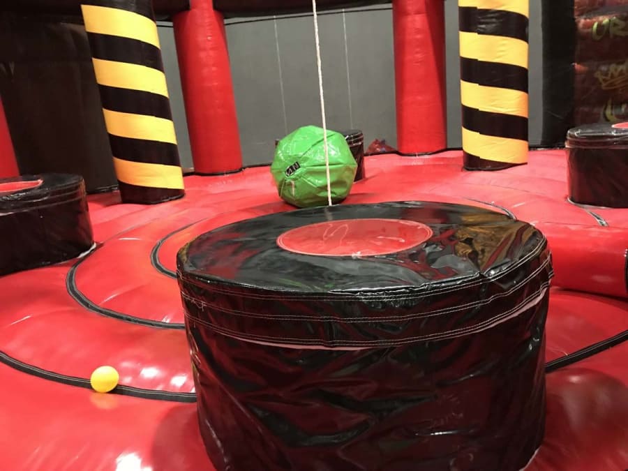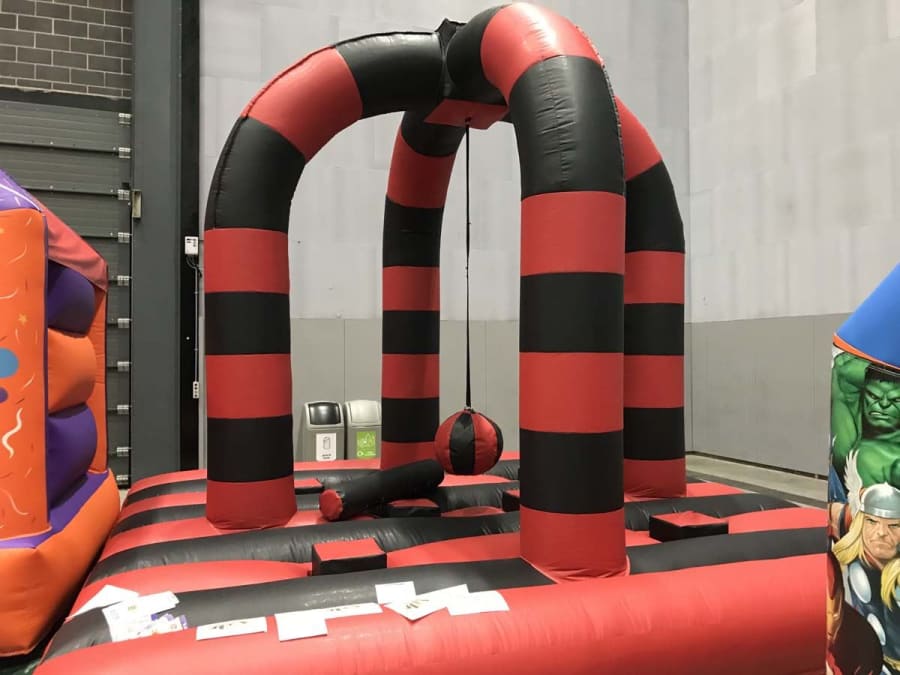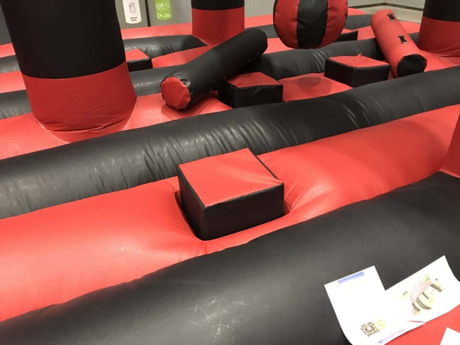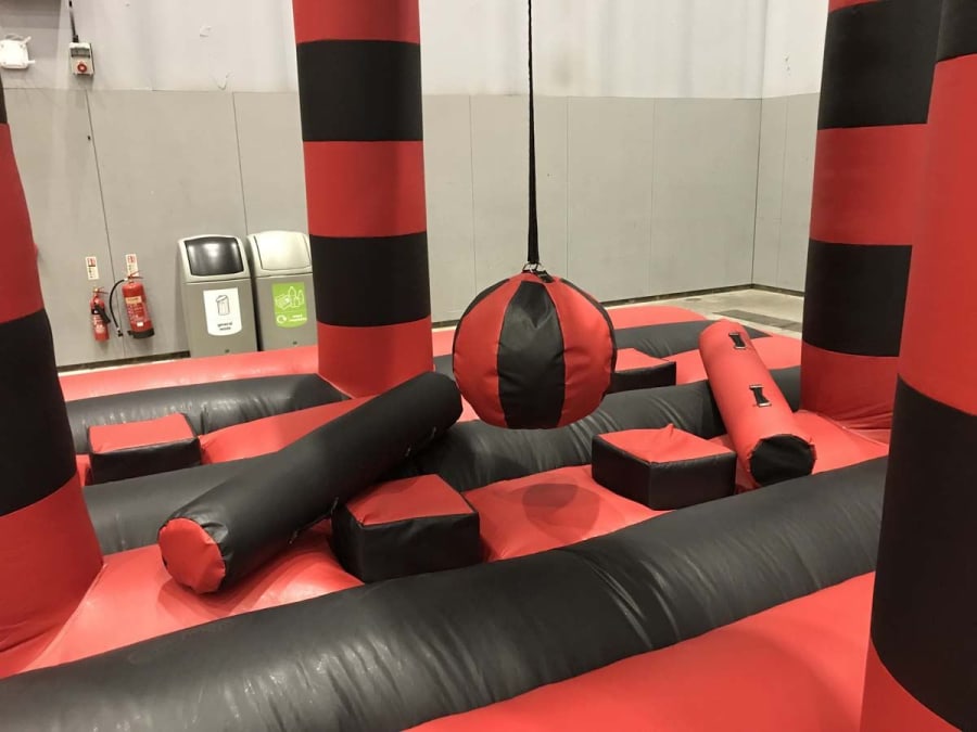 The base jump was a very strong design. Instead of it being a platform climb and front facing, it was essentially the same as an “up and over slide”, this works well when you consider that this is modular and can be added to a multi-part assault course, or hired on it’s own free-standing (just don’t do a pencil drop when it’s running on half the amount of blowers required and the remaining ones are kinked). The wrecking ball was tough as boots. I tried ripping off a podium one handed and genuinely couldn’t, extremely hard wearing and exactly what you want from that type of game.
