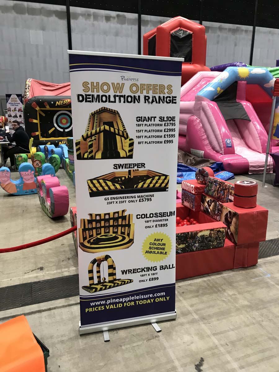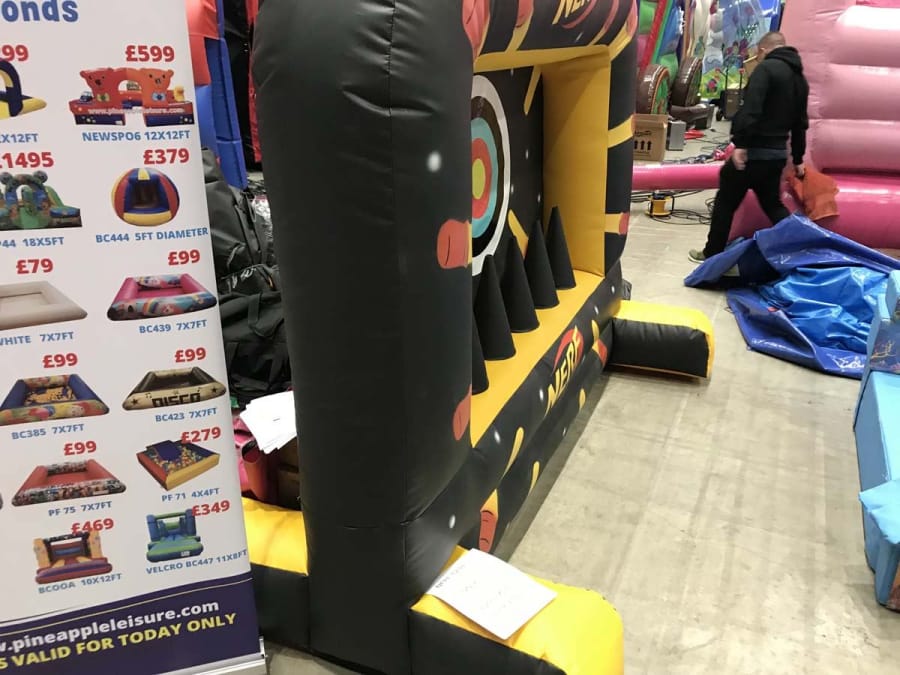 The owner (Andy) was on-hand to readily talk to customers and made sure he spoke with as many people as he could. The stand packed a punch, showing whack-a-moles, wrecking ball, adult castles, wedding castles, soft play, connect four, disco castles, nerf shoot outs, sumo suits and more. The best part was a life time warranty on all products purchased at the show! I have never seen such a claim made, but it’s extremely bold!