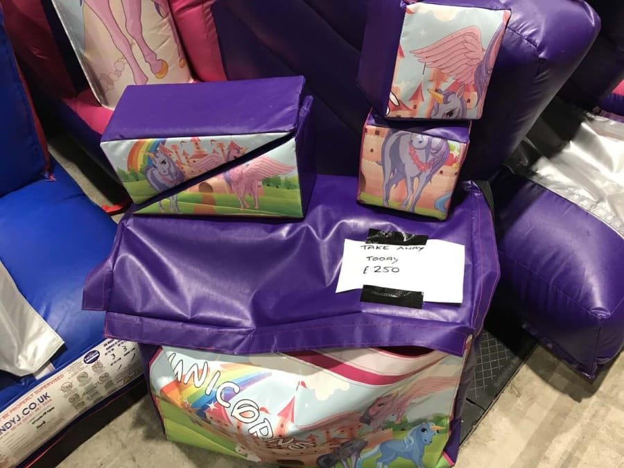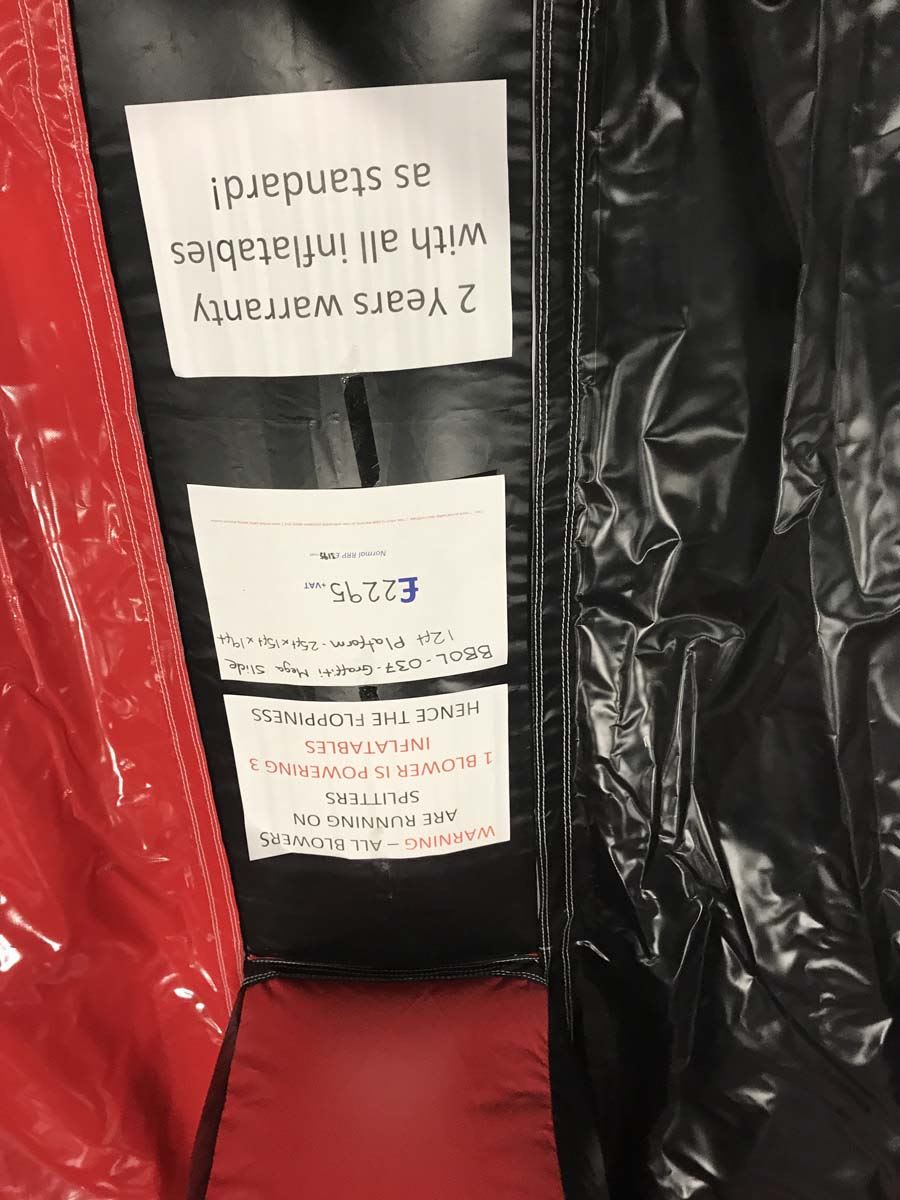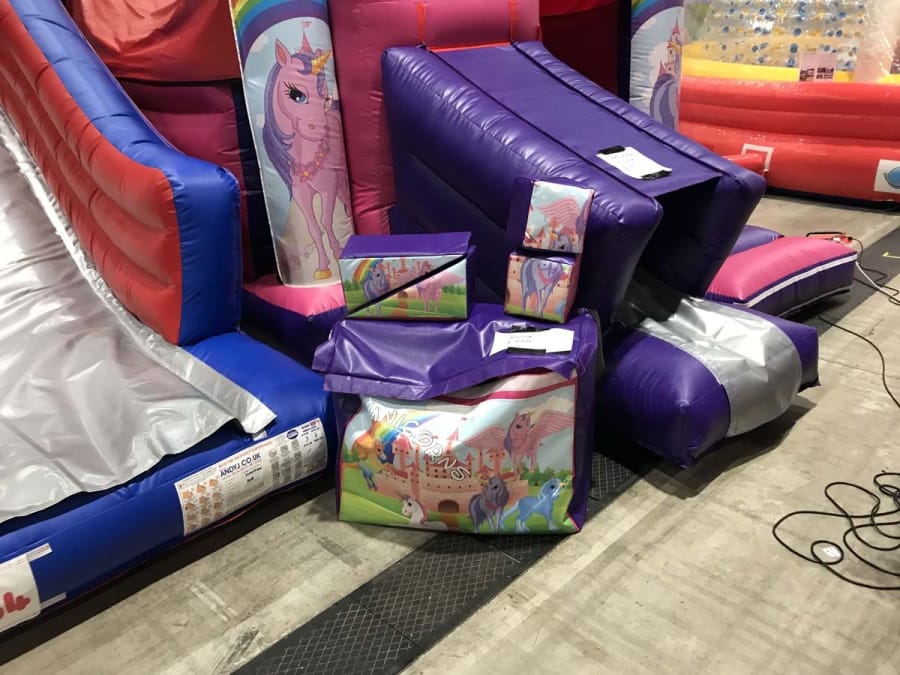 Some of their equipment didn’t have the design or sewing quite what you would expect to see at a show or regular unit; Twists in the pillars, walls and unnecessary stress points that would sadly over time require repairs. However, the price did reflect this… A printed Unicorn castle with PIPA tag could be taken away for £400 and a h-frame side slide combi with PIPA tag for just £549.