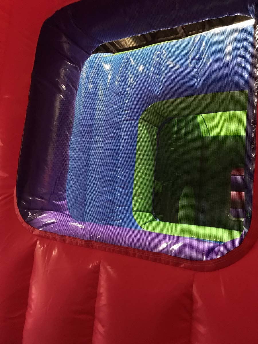 Unfortunately though, the slide isn’t very high or steep and the inside has no bish-bash. It looks very empty and there really isn’t any excuse for this considering that MagicAir’s long modular assault course has always been at the front of creating exciting things to go in it, things that have been admired by others. In fact, it could almost be called an enclosed up and over-slide. This design needs to be improved to make it more fun. It is a fun-run after-all.