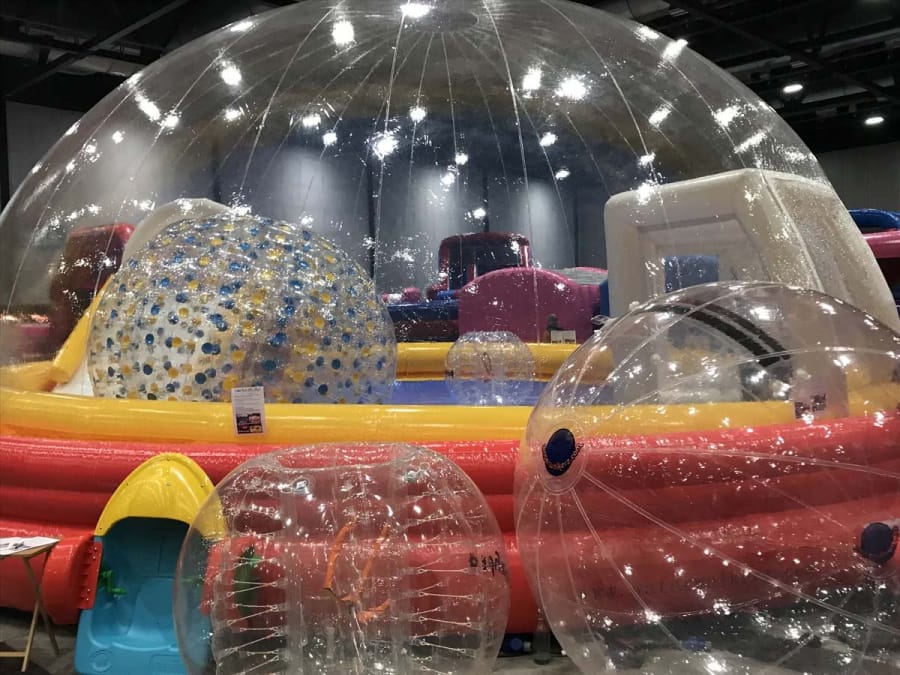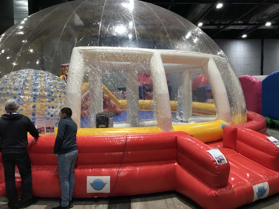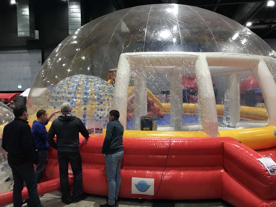 It’s hard to chose the best thing on the Airquee stand, but I think it has to go to the new globe. It was something I really loved previously, but it used to be solely for Christmas and be a snow-globe. They’ve now changed that model entirely so it has modular and changeable bish-bash props, background artwork and artwork round the skirt, transforming it in a very elegant way to a pumpkin, Easter scene, wedding scene or anything else. It changes it from a 1-2 month product to something you can hire all year and all occasions. It’s still really more for photo opportunities, but technically it can be used a moonwalker and hired for bouncing, too.