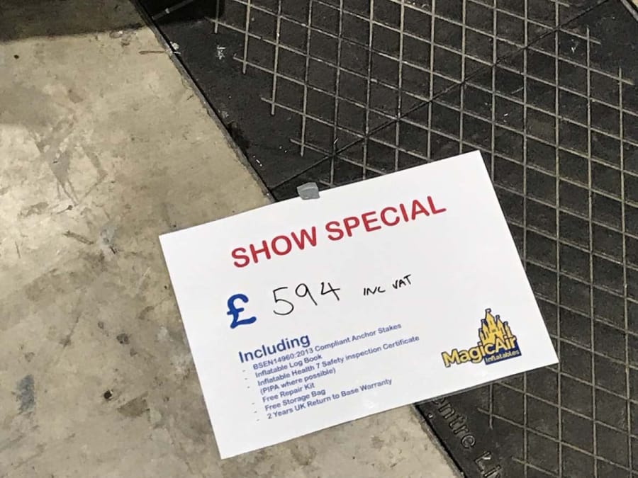 The value on the day was brilliant, taking one away for £1250(+) including a blower. The artwork was incredibly cute and bright, rivaling any one else’s. I would say it was one of the very best value inflatables at the entire show; Assuming it was built and lasted as long as it should do (which I have no reason to believe it wouldn’t, plus back-ed up with a UK warranty).