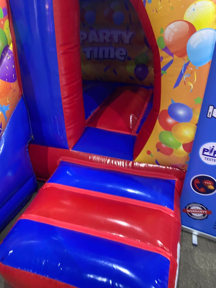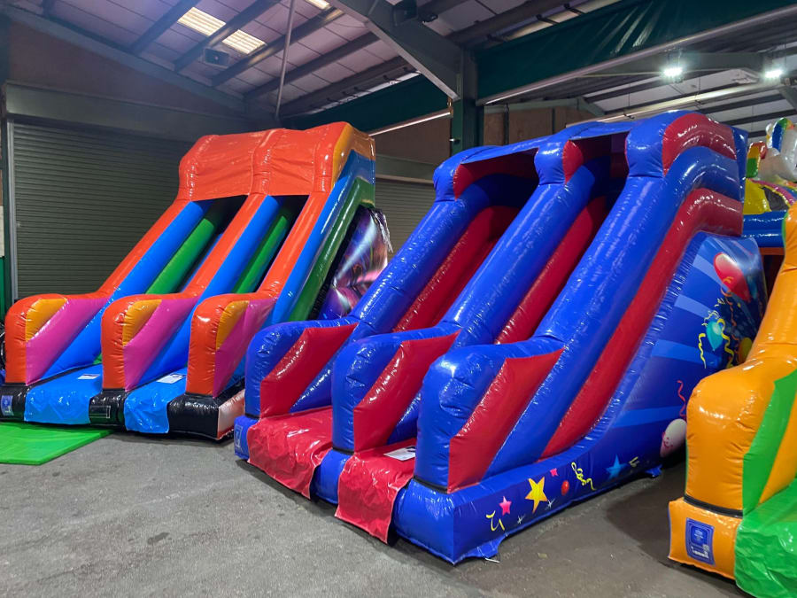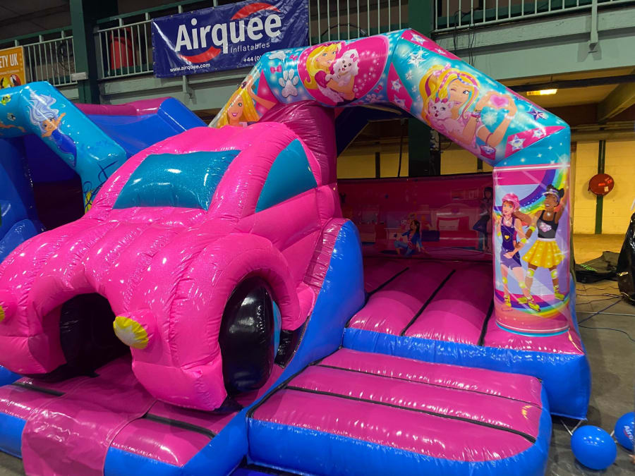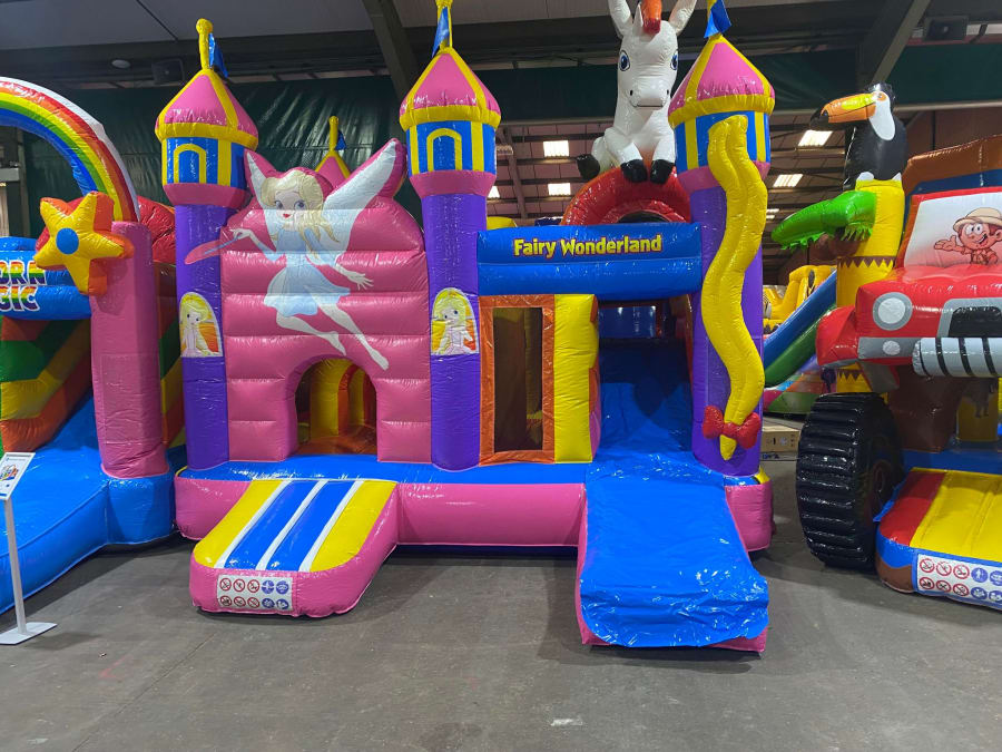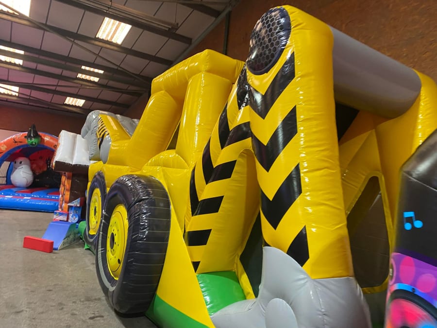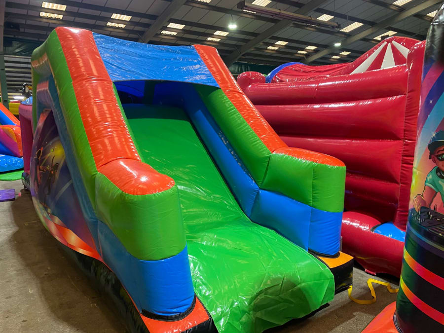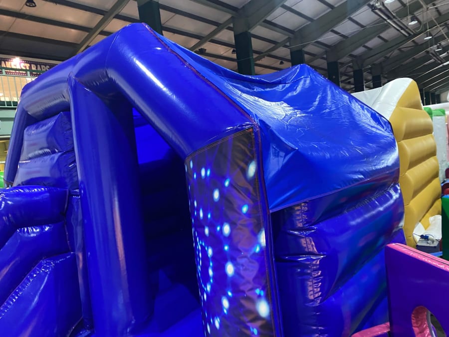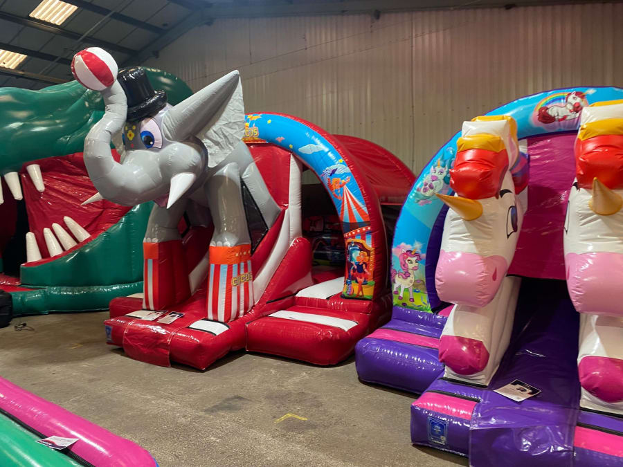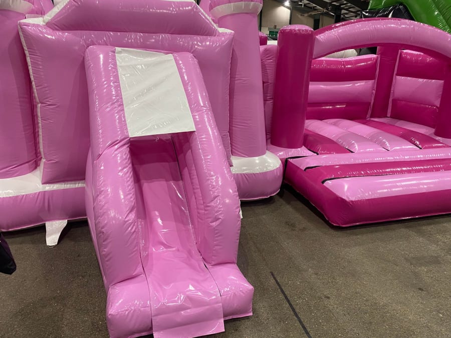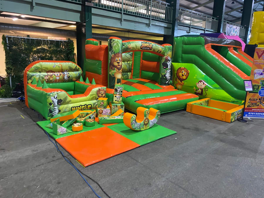 There was a front slide bouncy castle, a good size that compared to any other on the market. It was disco ready with light and speaker pouch. It had a fitted rain cover and the material used is better than I have ever seen them use previously. It had velcro strips on the front and came with a set of artwork, too. It had seatbelt webbing, come in either cape material or even gloss at no extra cost and was all sewn on a twin needle machine. There was no pinch points, no unnecessary stress areas, it was straight and had no twists. This was on offer for £900 - Which is quite unbelievable. No one else is offering prices quite like that.