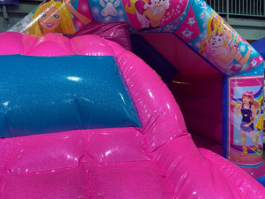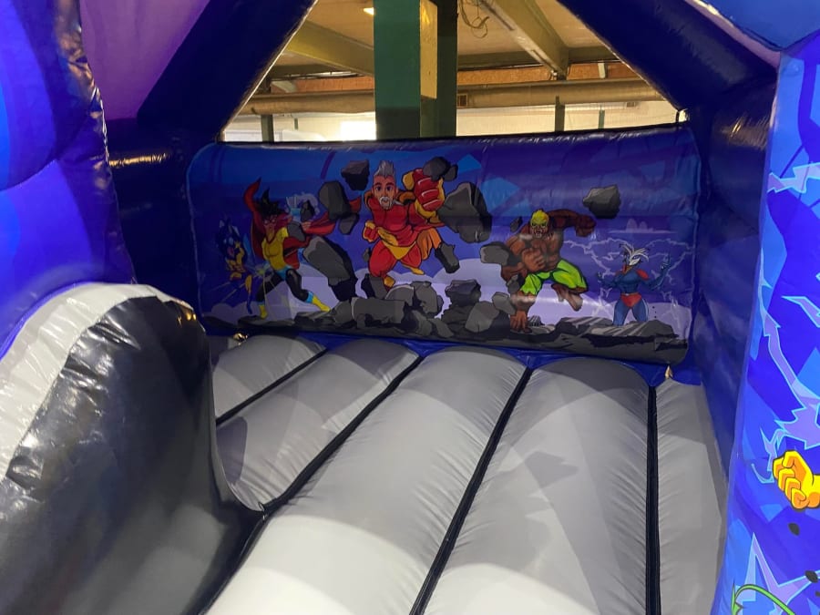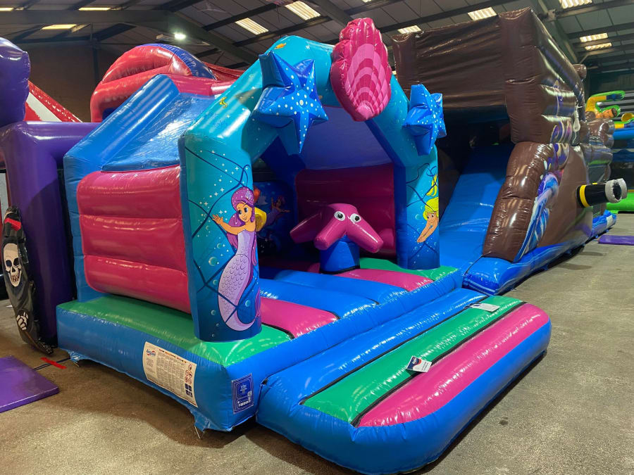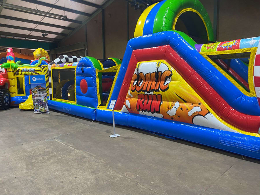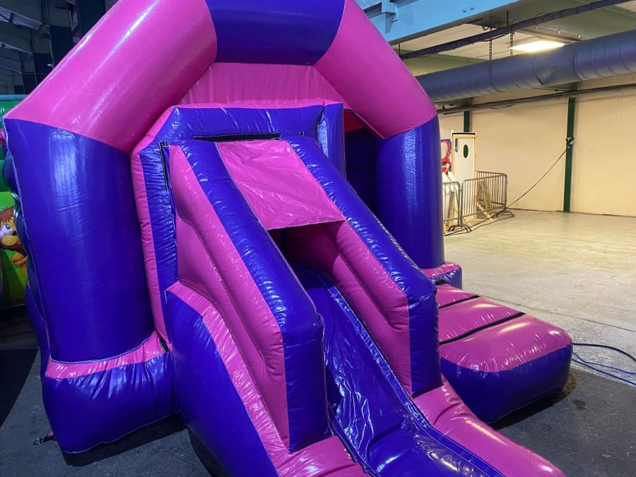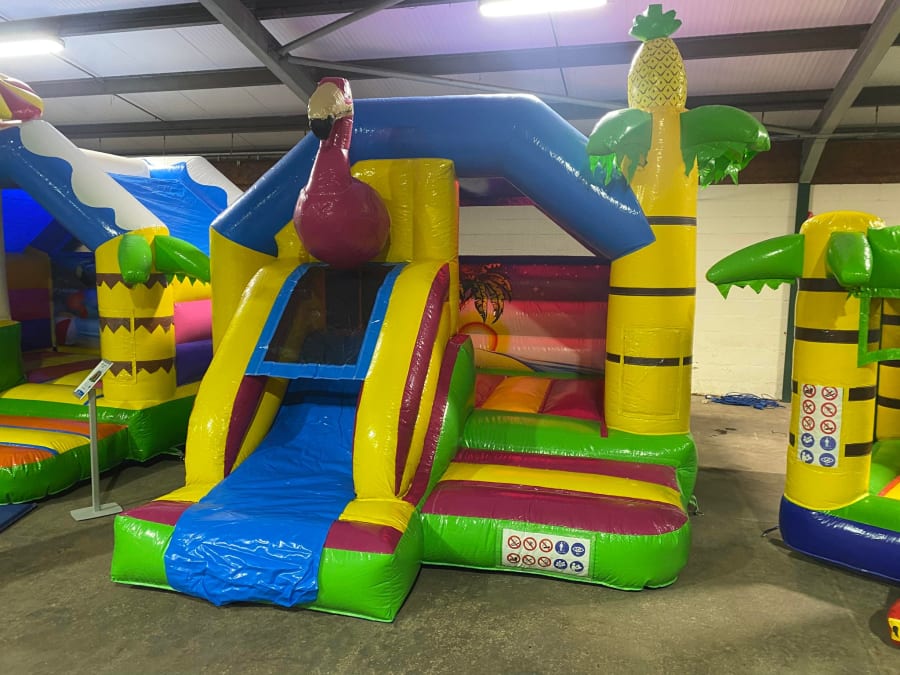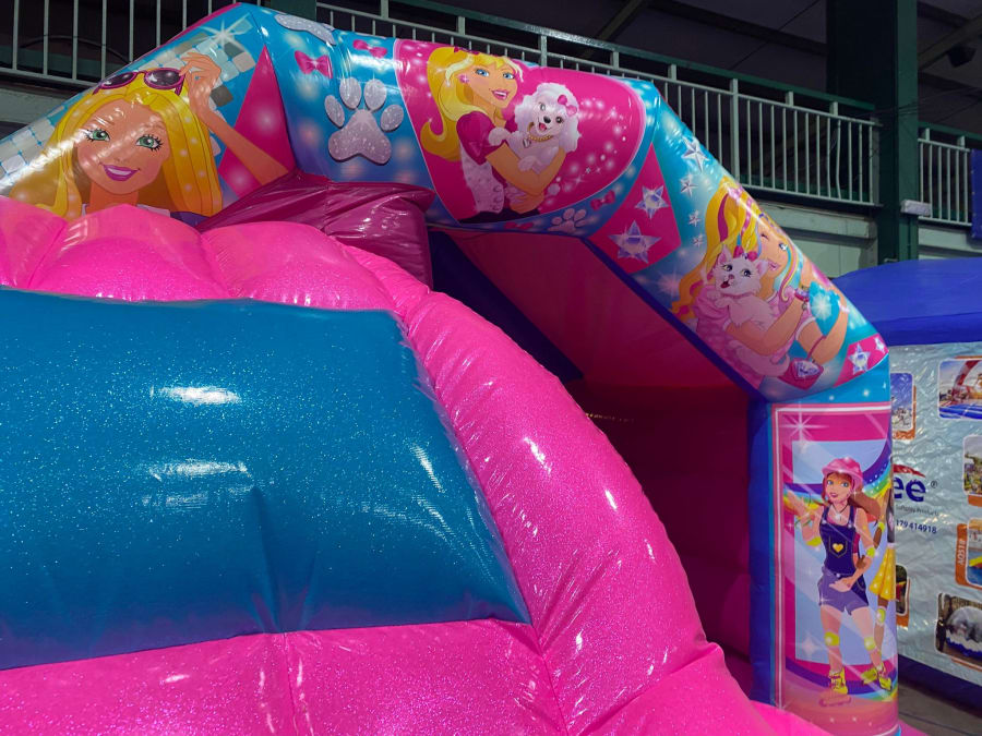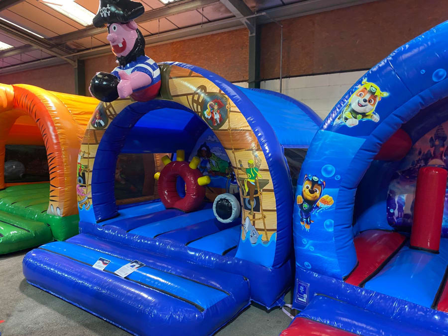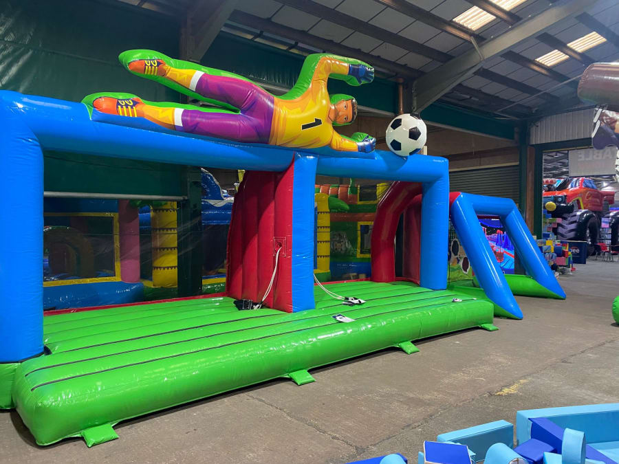 There was a front slide bouncy castle, a good size that compared to any other on the market. It was disco ready with light and speaker pouch. It had a fitted rain cover and the material used is better than I have ever seen them use previously. It had velcro strips on the front and came with a set of artwork, too. It had seatbelt webbing, come in either cape material or even gloss at no extra cost and was all sewn on a twin needle machine. There was no pinch points, no unnecessary stress areas, it was straight and had no twists. This was on offer for £900 - Which is quite unbelievable. No one else is offering prices quite like that.