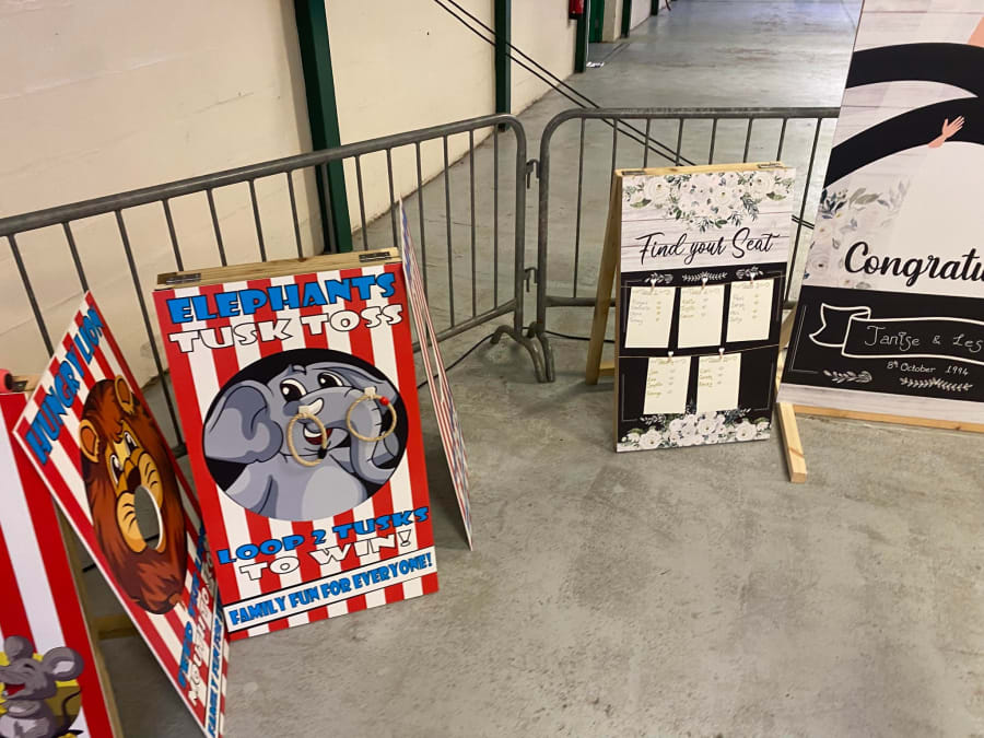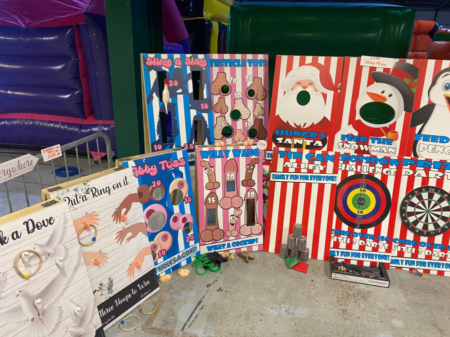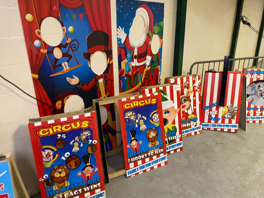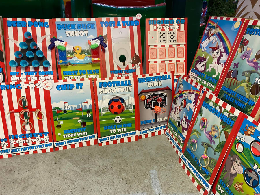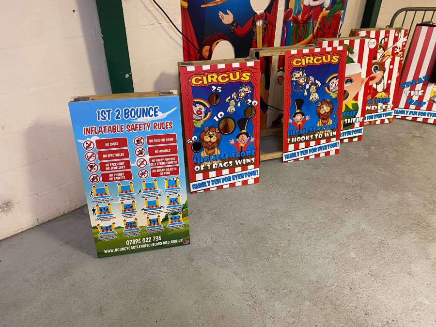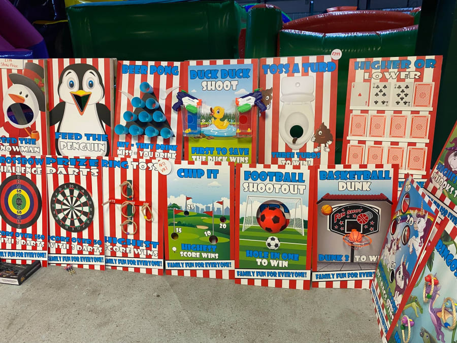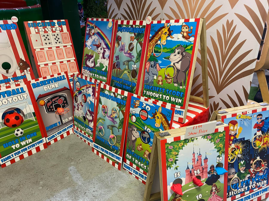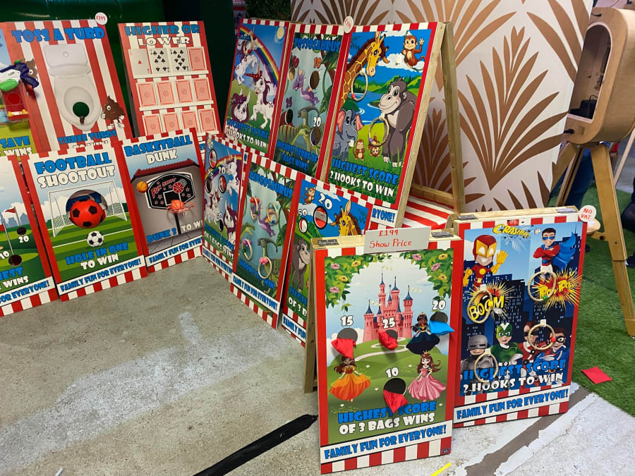 They also had their own board games which were pretty exclusively made for parties and hire. I think they would hire pretty well and could well take off as add-ons, but I would be tempted to get something more versatile that could be re-used for other types of hire if I was investing on boards that take up space like that.