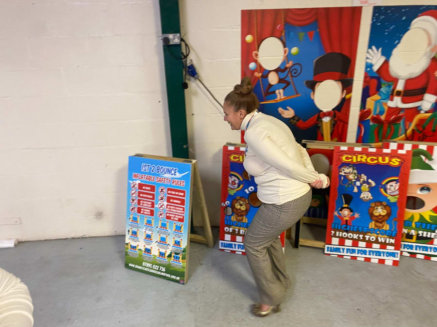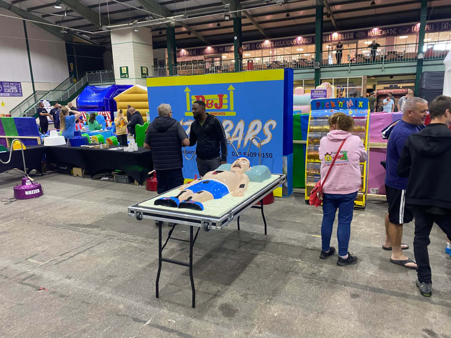 In Stacey’s case it genuinely feels like she got a stand as a business excuse to chat to people and have a look at inflatables and reminisce about an industry she used to be in. - They used to run an inflatable hire company.