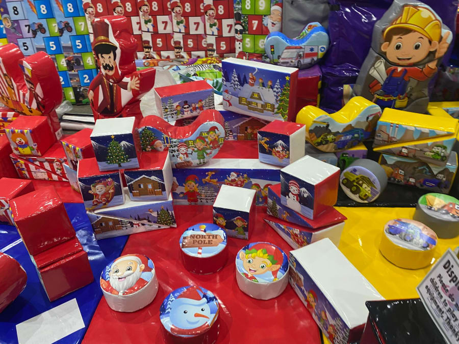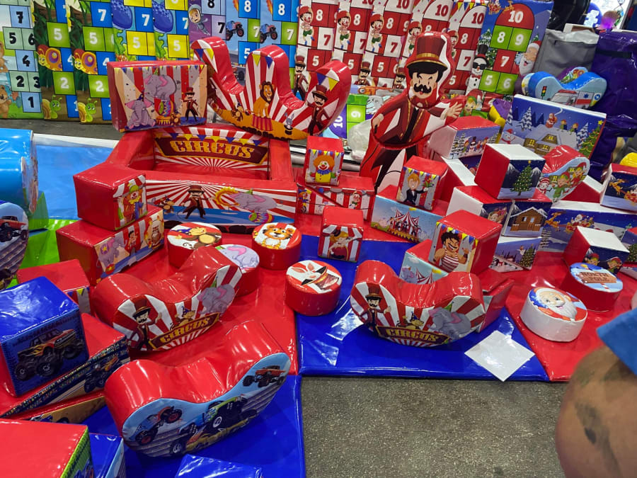 I think their approach this year was just to bring as much stock as possible and bring their best sellers, they was packed with hop scotch mats, bags and bags of soft play, ball pools, peek-a-boo stands and more.