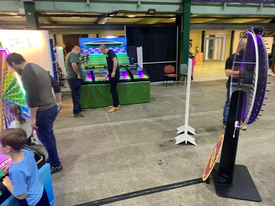 His games are all self contained in a flight case and most of them run off a Raspberry Pi (or variant there of). He writes the code for the games himself and it’s clearly a passion project for him.