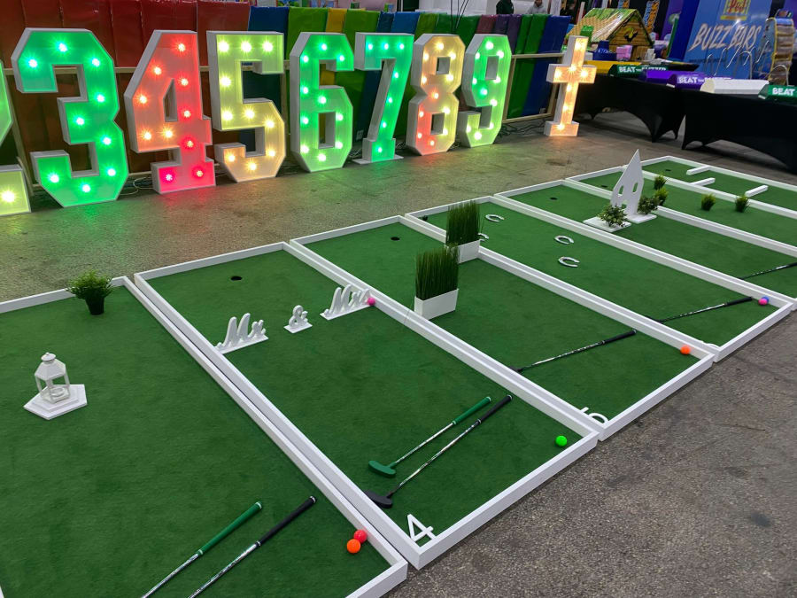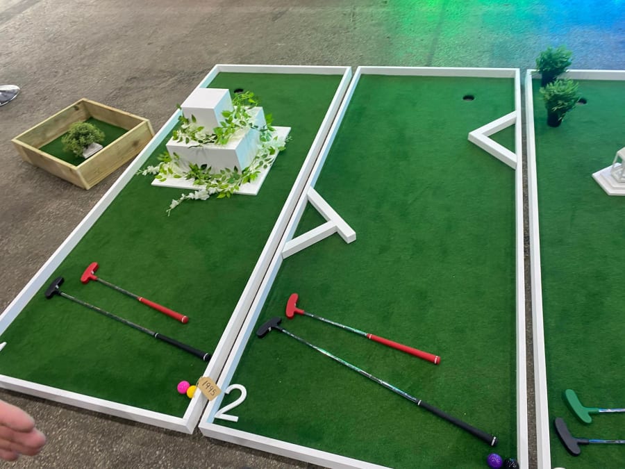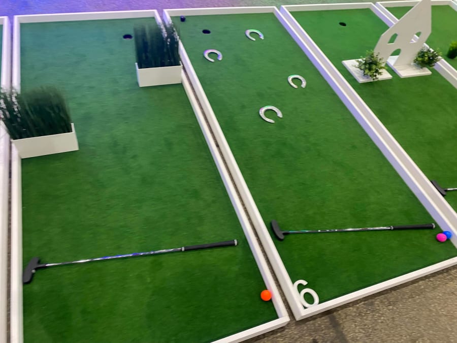 They also had a golf set on display - 9 holes in total. At first I didn’t think it would be challenging enough, but then when I looked I realised that all the obstacles are actually velcro. You can make it different each time and as hard or as easy as you want. It also means you can pull them off and stack them all for storage really easily - It’s been well thought through.