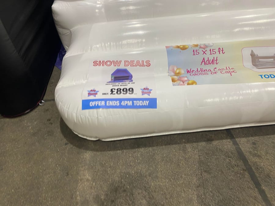 The above example was just one of many they had on display that was almost too good to be true. Narrow castles with velcro and disco ready for £500, a white wedding castle that I almost bought myself but had to remind myself of how much I hate shoes, grottos that cost less than ball pools and genuine bargains, not just for newbies but also for established hirers.