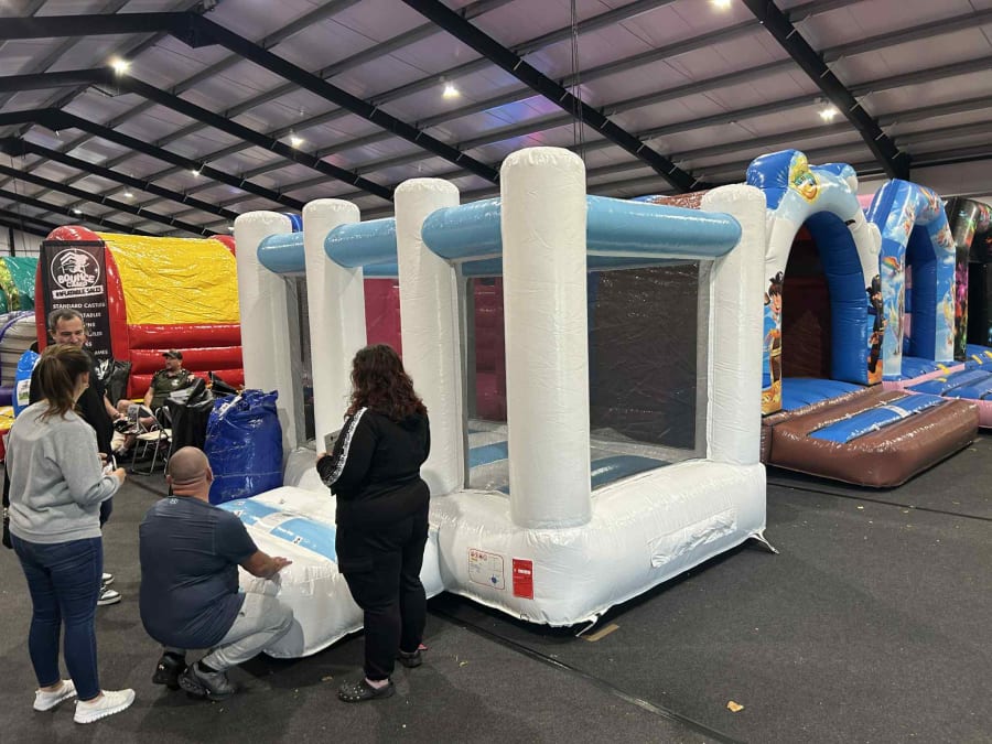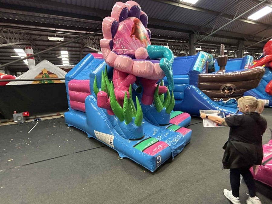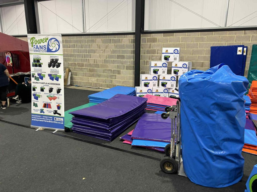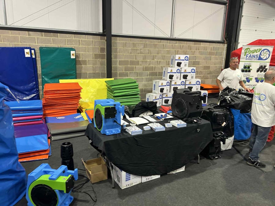 Mark isn’t just selling fans though - They had lots of mats and even some imported inflatables. The inflatables came with inspection reports and you would have to be a blind man to not work out where they’re also coming from; CiCi. That’s a good thing though really -CiCi often exhibits herself and a lot of people have her units without even knowing it. - I have an 8 foot platform slide from CiCi that’s about 8 years old and I know they was getting in under one company or another before even that - CiCi is a certified inspector and is quite capable of building to UK standards.