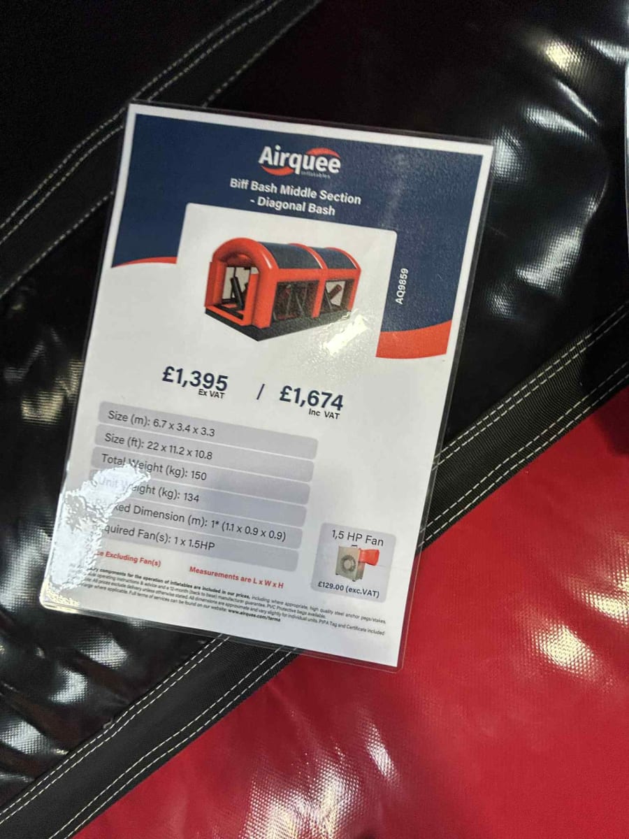 This is one of the cool things about the show - We bumped into a local competitor who we really get on well with (two very nice people who I owe more favours than I care to admit) and they decided to buy one, too. We agreed on the spot to match eachothers price and go with £245 a hire. The unit costs less than £1,200 including VAT - I think it’s the best ROI on an “event inflatable” you’re ever likely to see, plus it’s a one-man roll and not even heavy. - It’s a great opportunity to set the market price high early on (especially if you are near me please, lol).