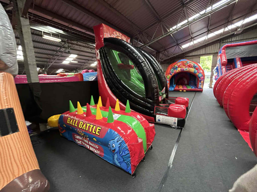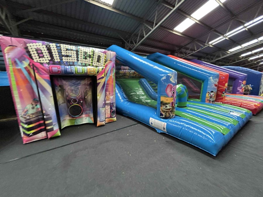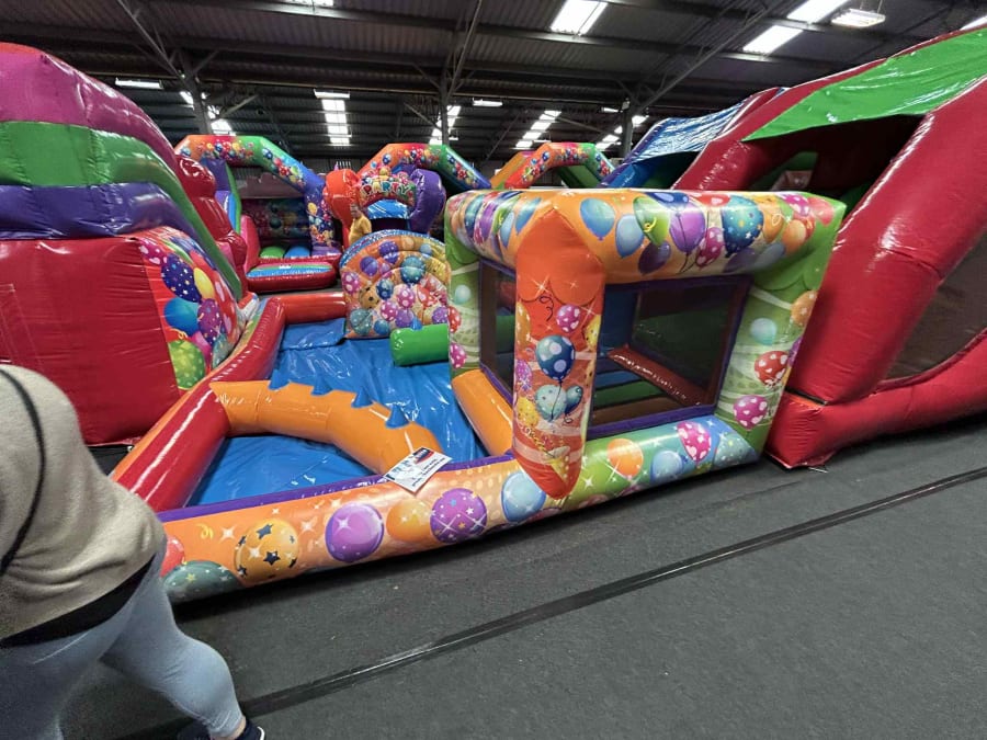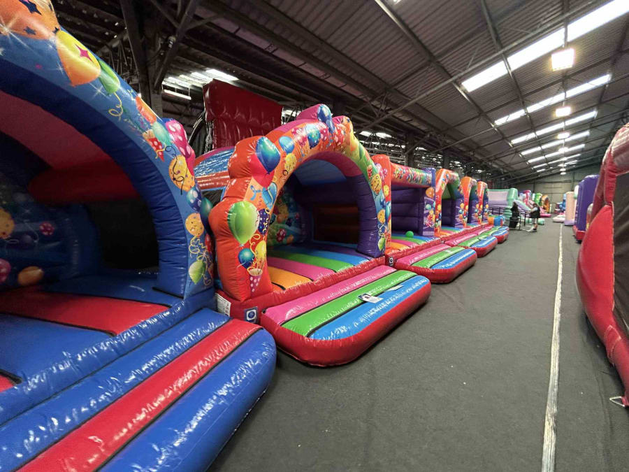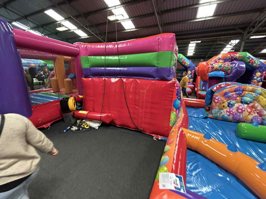 An absolute maze of 3D castles, slides, helter skelters etc. It was laid out like a small town, with one “street” being all about inflatable games, then a cul-de-sac full of the party time multi-coloured stuff, a whole wall for new dual lane inflatables - It really was like a little village.
