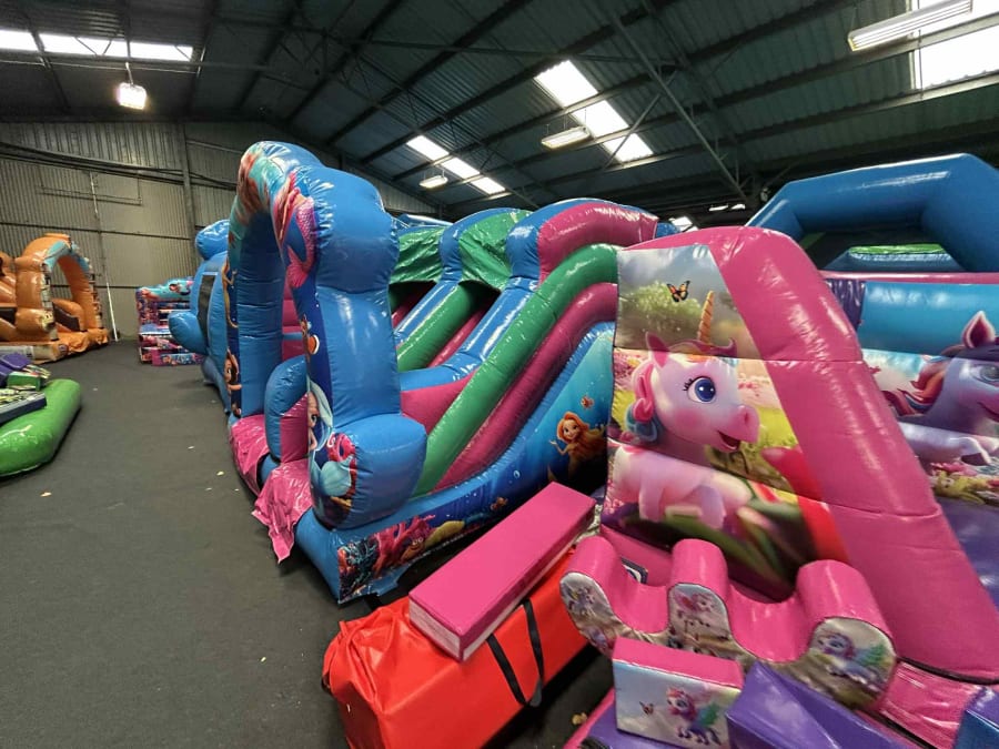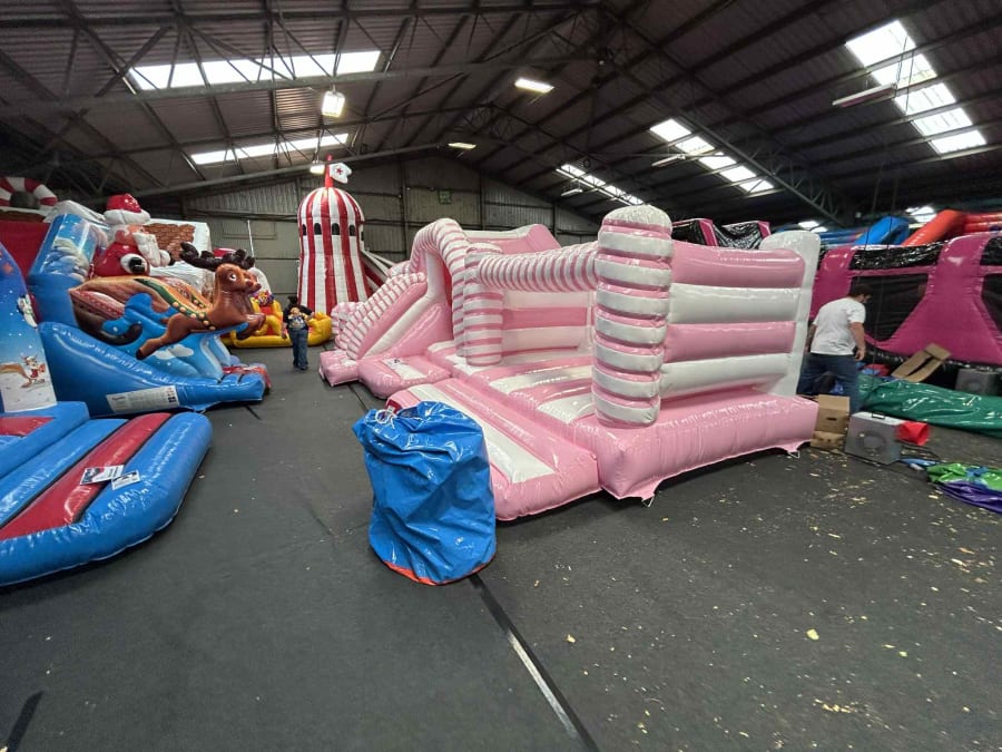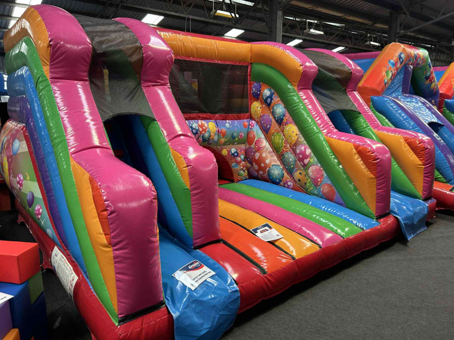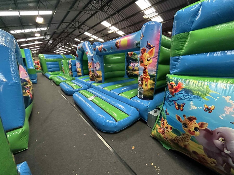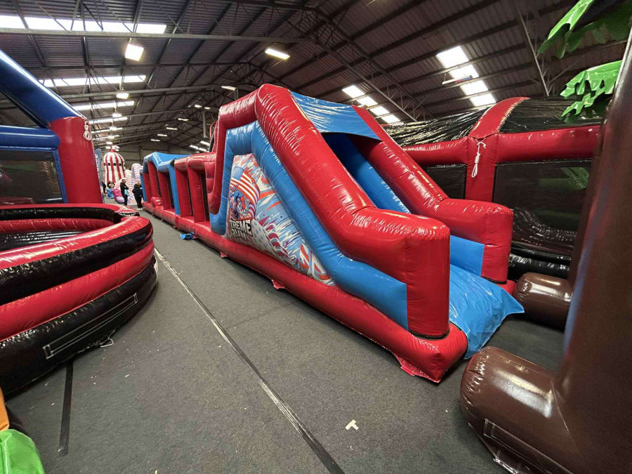 An absolute maze of 3D castles, slides, helter skelters etc. It was laid out like a small town, with one “street” being all about inflatable games, then a cul-de-sac full of the party time multi-coloured stuff, a whole wall for new dual lane inflatables - It really was like a little village.