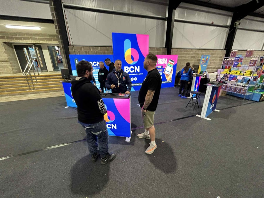 BCN have always made their stands attractive - Pop-up kiosks and back-drops, but they’re now also bringing some of that international trade show grand style to the LSS with big back-lit displays - This isn’t limited to the stand either, they literally had matching blue coloured trainers and and clothing.