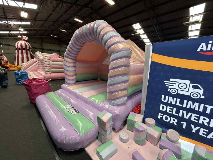 This wasn’t only the only new innovation they displayed - It was very cool to see their new double slide inflatables in person. I saw this launched a few weeks/months ago and liked the look of them then, but was blown away in person. The colorful party theme was a huge section of Airquee’s stand, but standing front of house in prime position was this new design. Easiest way for me to describe it is like a really big version of the “Midi” bouncy castles - The sort of TripleA multi-coloured bouncy castles that have the bish-bash inside, but much wider and then a slide attached at either end (forward facing).