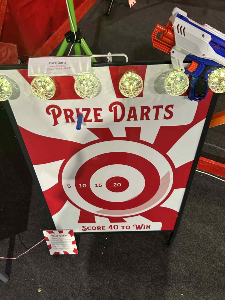 I was super annoyed with Jimmy Duffy who pipped me to the post on their shoot-out game. Calling it a shoot-out doesn’t really conjure the right mental image - It was shaped like an axe-throw game, but had a back panel with targets and a clever little nerf bullet capture and return trough.